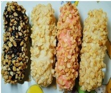 चॉकलेटबादामबार,जापानीफ्राइडश्रिम्प/पोर्ककटलेट,तिलकुकीज,क्रोक्वेट्सपरलागू।